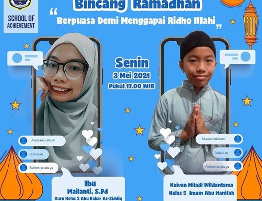 ASSALAMUALAIKUM WR.WBREMINDER LIVE INSTAGRAMBINCANG RAMADHAN👩🏻🏫 Ibu Dita Fauzia, S.PdGuru Kelas 5 Imam Abu Hanifah👲 Abrar Pamungkas Setyo AjiKelas 5 Imam Maliki📝 Keutamaan Sahur saat Ramadhan🗓 Kamis, 5 Mei 2021 / 24 Ramadhan 1442 H🕔 17.00…