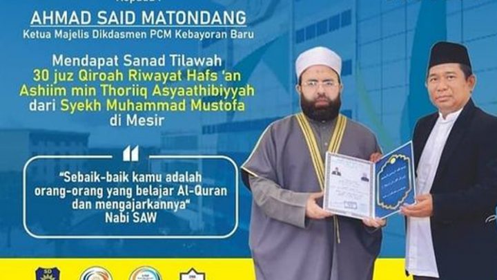 IJAZAH SANAD TILAWAH AL-QURANAlhamdulillah. Diantara keberkahan Ramadhan 1442 H ini, Ketua Majelis Dikdasmen PCM Kebayoran Baru mendapatkan Ijazah Sanad Tilawah 30 Juz Qiroah Hafs an ‘Ashim Min Thoriq Assyaathibiyyah dari Syekh Muhammad Mustofa di Mesir.Insya…